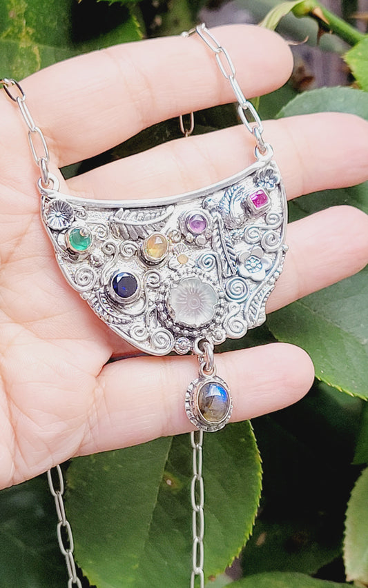 Handmade Pendant in Sterling Silver and Incarose with work on the back