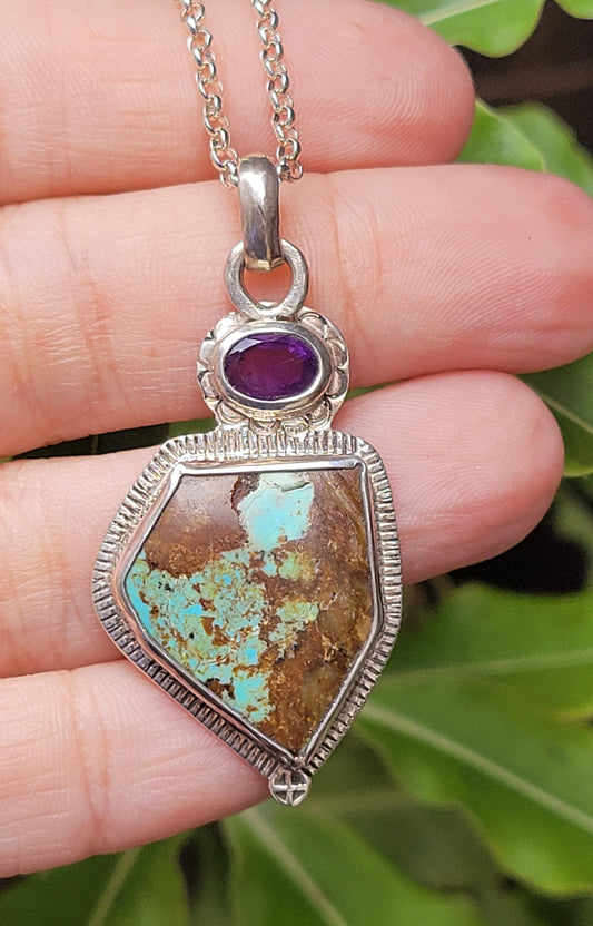 • Handmade Sterling Silver Pendant with Turquoise and Amethyst