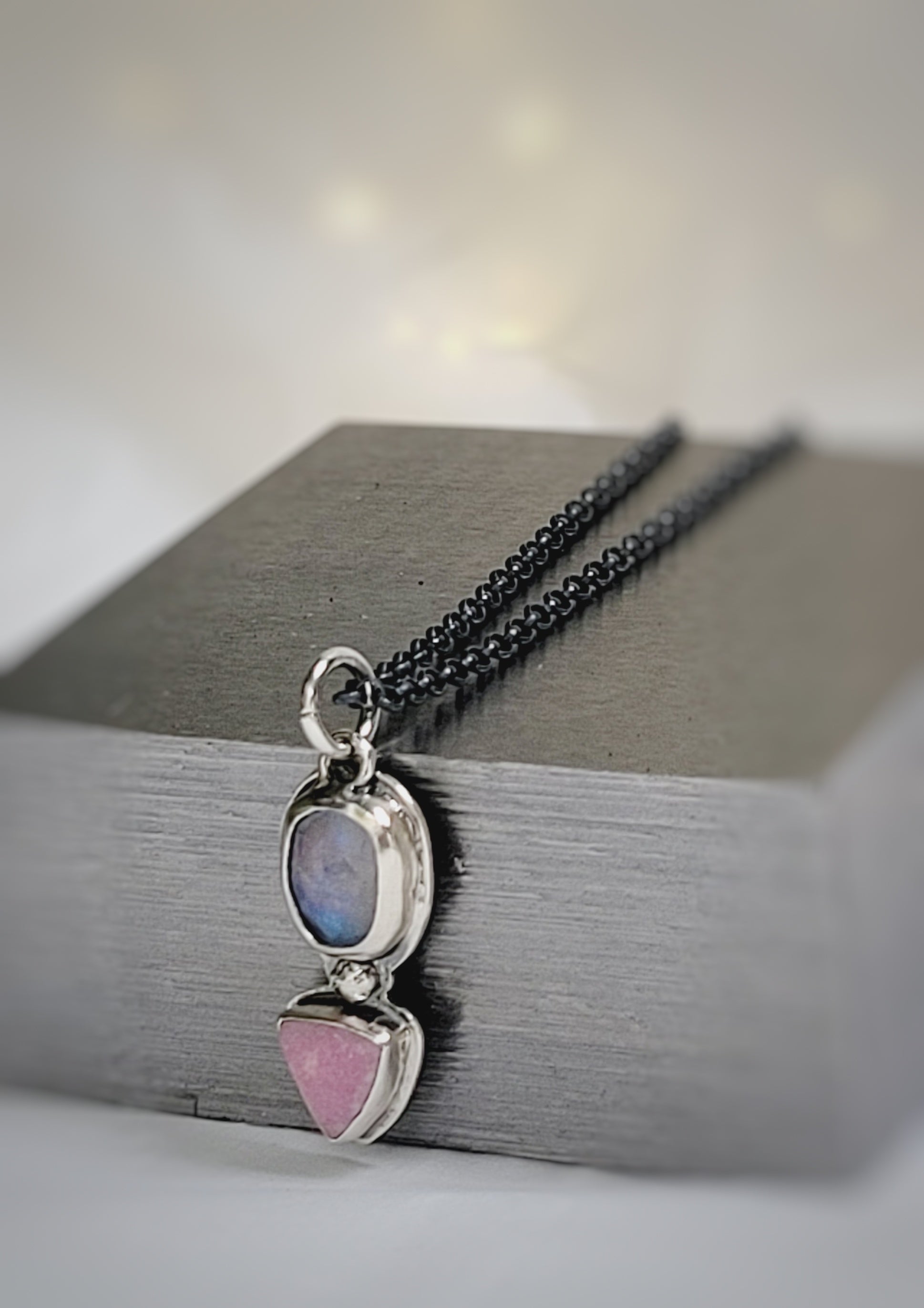 Sterling Silver, faceted Moonstone and Cobalt Mineral Pendant
